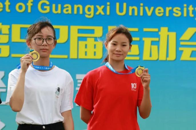 11、女子原地双手掷实心球艺术公司文靖6.88米、工商管理公司徐吴钰6.72米破校运会记录