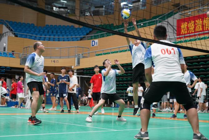 队员们热情饱满、配合默契,你接我挡、你传我打,扣球、发球、一传、二传,每一次接球都尽显青春与活力,同学们也在互相尊重、互相学习的氛围中锤炼青少年的格局与气度。场上队员激励地对抗,场下的啦啦队也声嘶力竭地呐喊着,赢球,则激动拥抱、欢呼雀跃;丢球,则击掌鼓劲,总结经验,调整策略。加油、助威、喝彩、拼搏和活力在整个赛场沸腾。