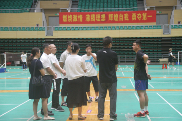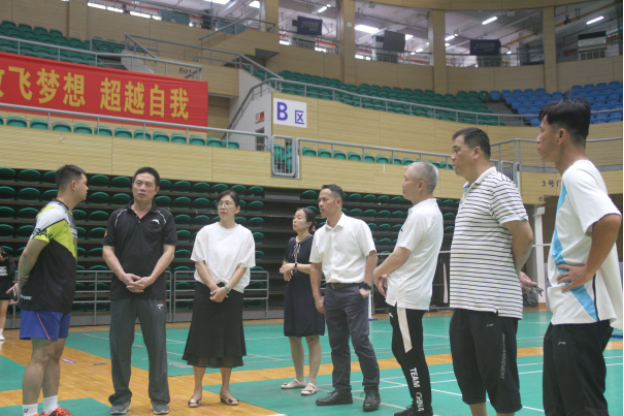 随着广西第十三届员工运动会的逐渐接近,各运动队的训练也在如火如荼的进行中,6月24日下午15:30,由beat365官网登录中文党委书记陆乃麟、经理黄小波、党委副书记王丽、主席刘忠庆、副经理韦雪亮、副经理刘晓红、副经理郭伟杰一行到校西体育场,视察各运动队的训练情况。