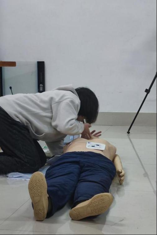 由beat365官网登录中文运动训练19级游泳专业陈雪怡同学向大家演示了心肺复苏法和AED除颤仪的使用。