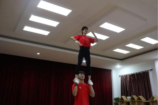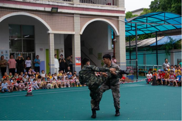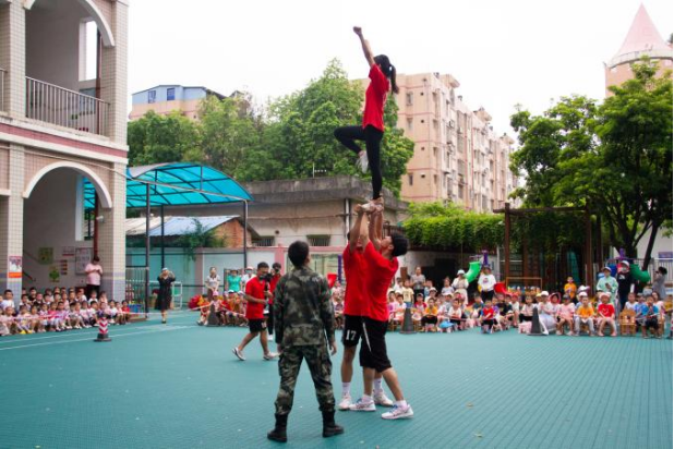 技能展示环节结合了beat365官网登录中文特色项目:啦啦操、绳梯、跳绳、武术、羽毛球、足球与篮球以及公司退伍同学展示的格斗技能。