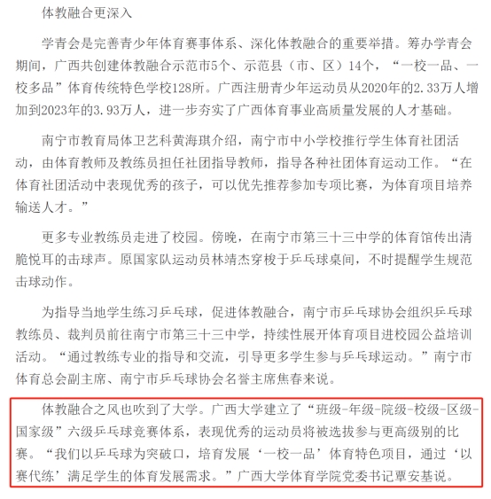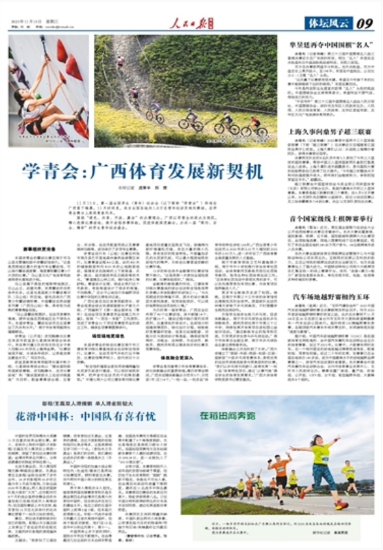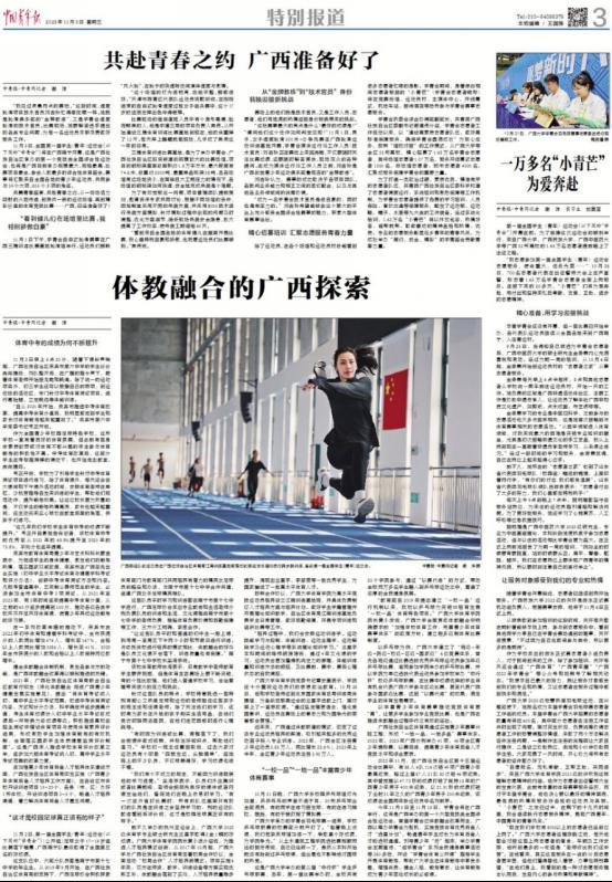 11月3日,《中国青年报》在当日第3版显著位置刊登了谢洋的署名文章《体教融合的广西探索》,集中报道了公司体教融合发展的详细情况。