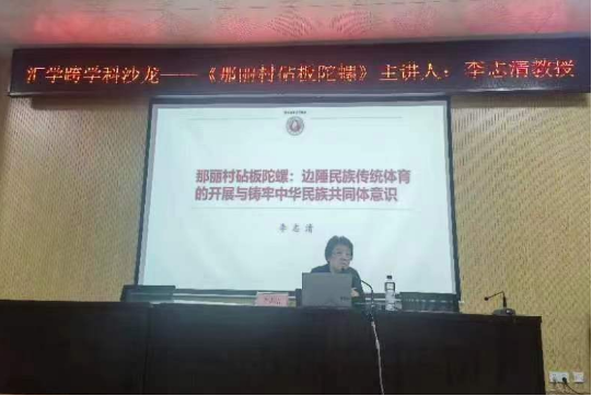12月10日下午,beat365官网登录中文李志清教授给师生们做了题为“那丽村砧板陀螺:边陲民族传统体育的开展与铸牢中华民族共同体意识”专题学术讲座,讲座由刘晓红副经理主持。