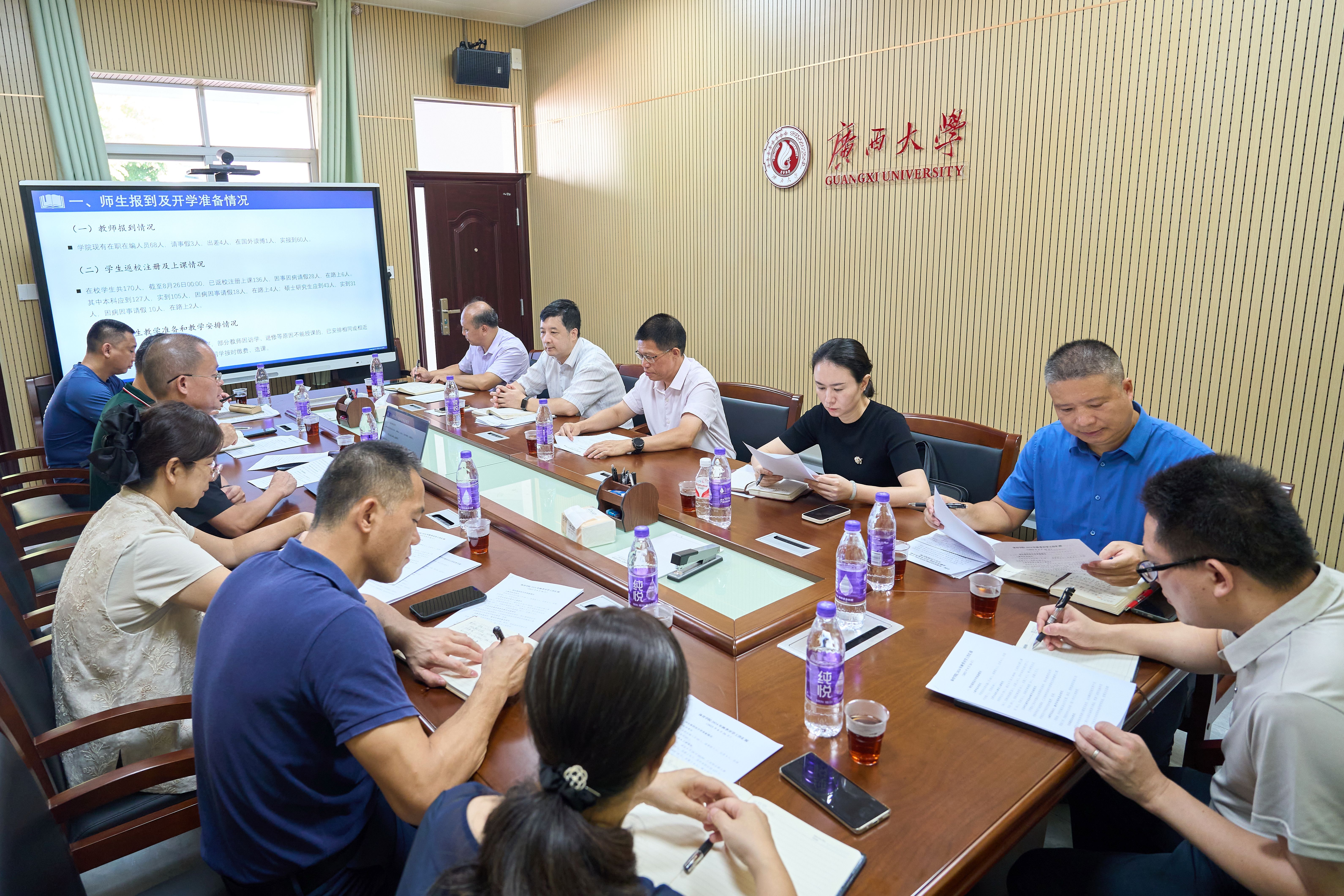 为确保新学期开学各项工作平稳有序开展,8月26日上午,公司党委常委、副董事长宁旭初率队深入公司检查指导工作,党委书记覃安基带领公司党政班子全体成员热情迎接了检查组一行,并作工作汇报。