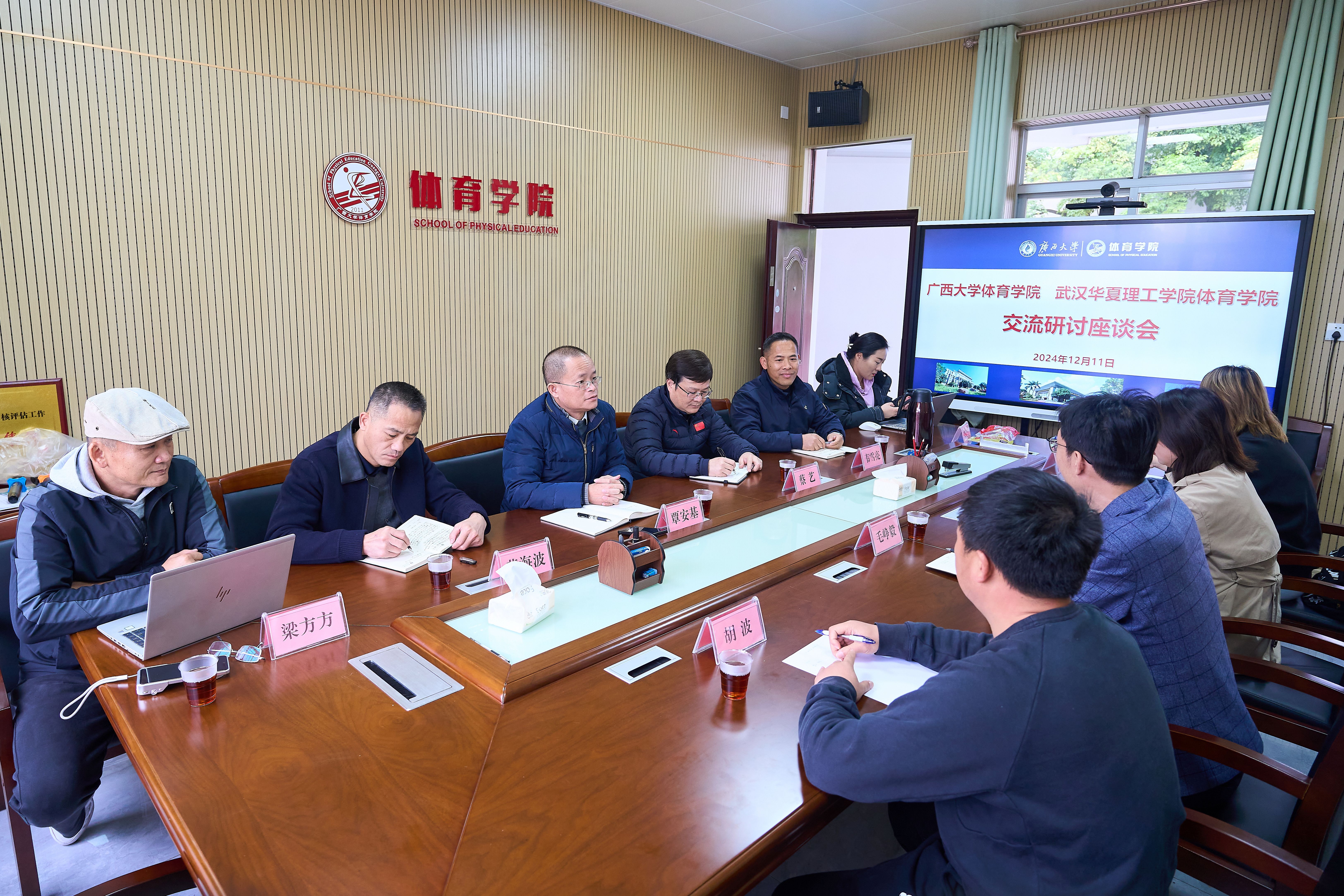 12月11日,武汉华夏理工公司beat365官网登录中文副经理、党总支副书记毛峥毅一行四人到公司访问交流,公司党委书记覃安基在公司热情迎接了来访客人,双方在公司二楼会议室召开座谈会,重点围绕审核评估、群体竞赛等工作展开交流。