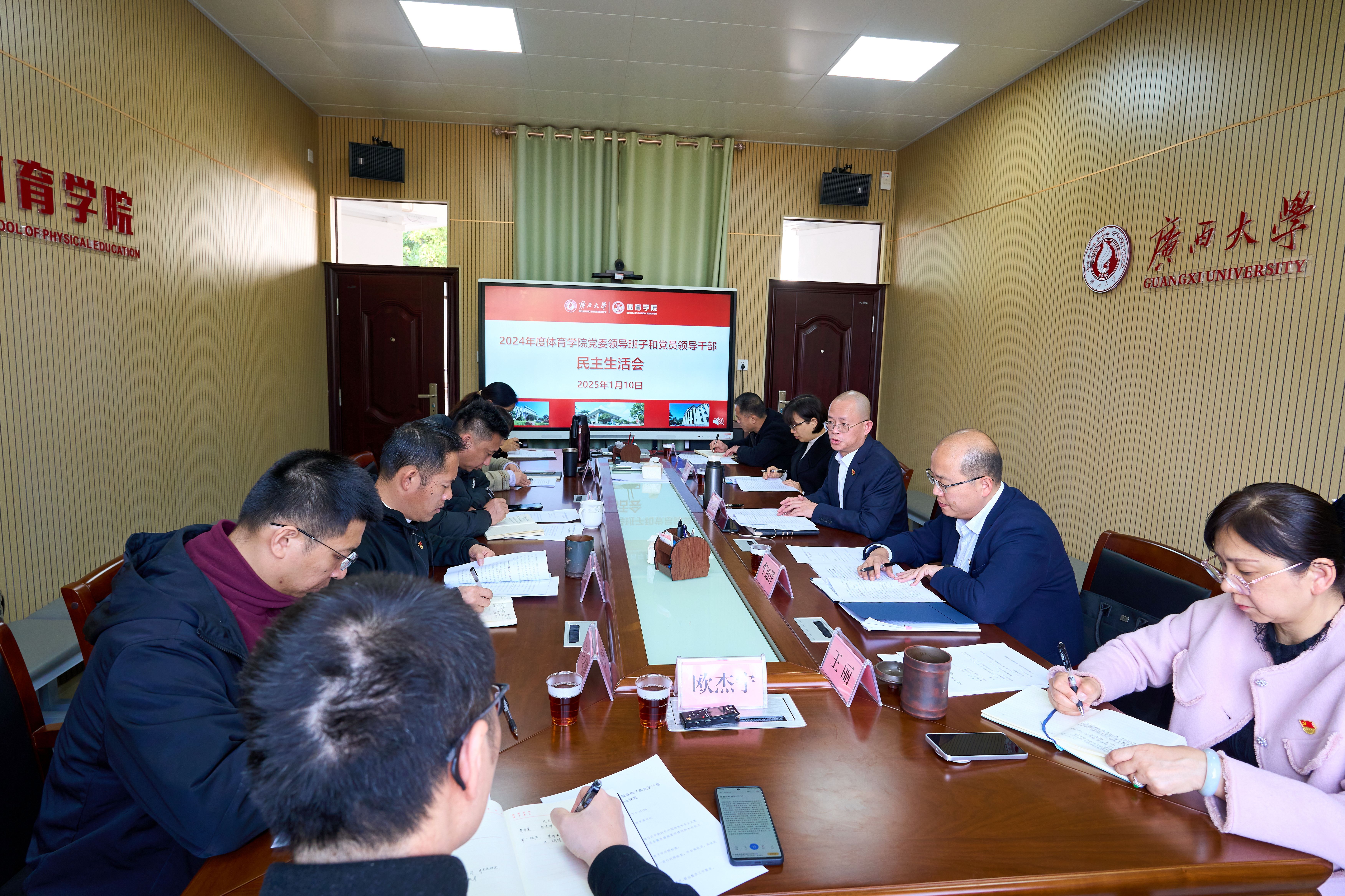 2024年度beat365官网登录中文党委领导班子和党员领导干部民主生活会于1月10日在公司办公楼二楼召开,公司党委书记覃安基主持会议并讲话,公司党委组织部副部长李道洋、自治区纪委监委驻beat365官网登录中文纪检监察组第一纪检监察室主任周艳华到会指导。
