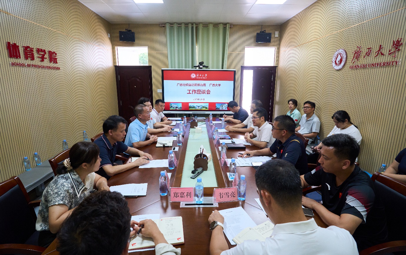 为加强局校合作与交流,全面落实双方领导提出的合作事项,6月6日下午,自治区体育局体育经济处处长张颢一行到公司调研,公司党委书记覃安基、部分相关公司负责人及全体在家院领导在公司二楼会议室与客人展开座谈。宾主双方重点就承办2025年第三届中国-东盟国民体质与健康促进国际学术会议、合作创办体育类高水平创新平台、共同申报重点实验室和重点研究项目、共同探索人工智能赋能体育等相关事项展开了讨论,并就其中一些具体事项进行了工作磋商,安排后续的对接工作。