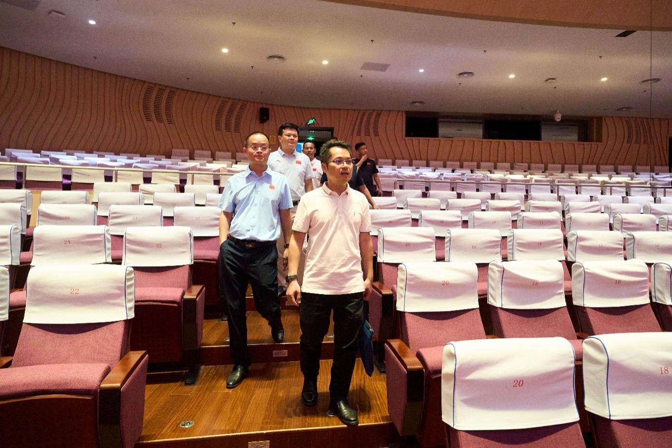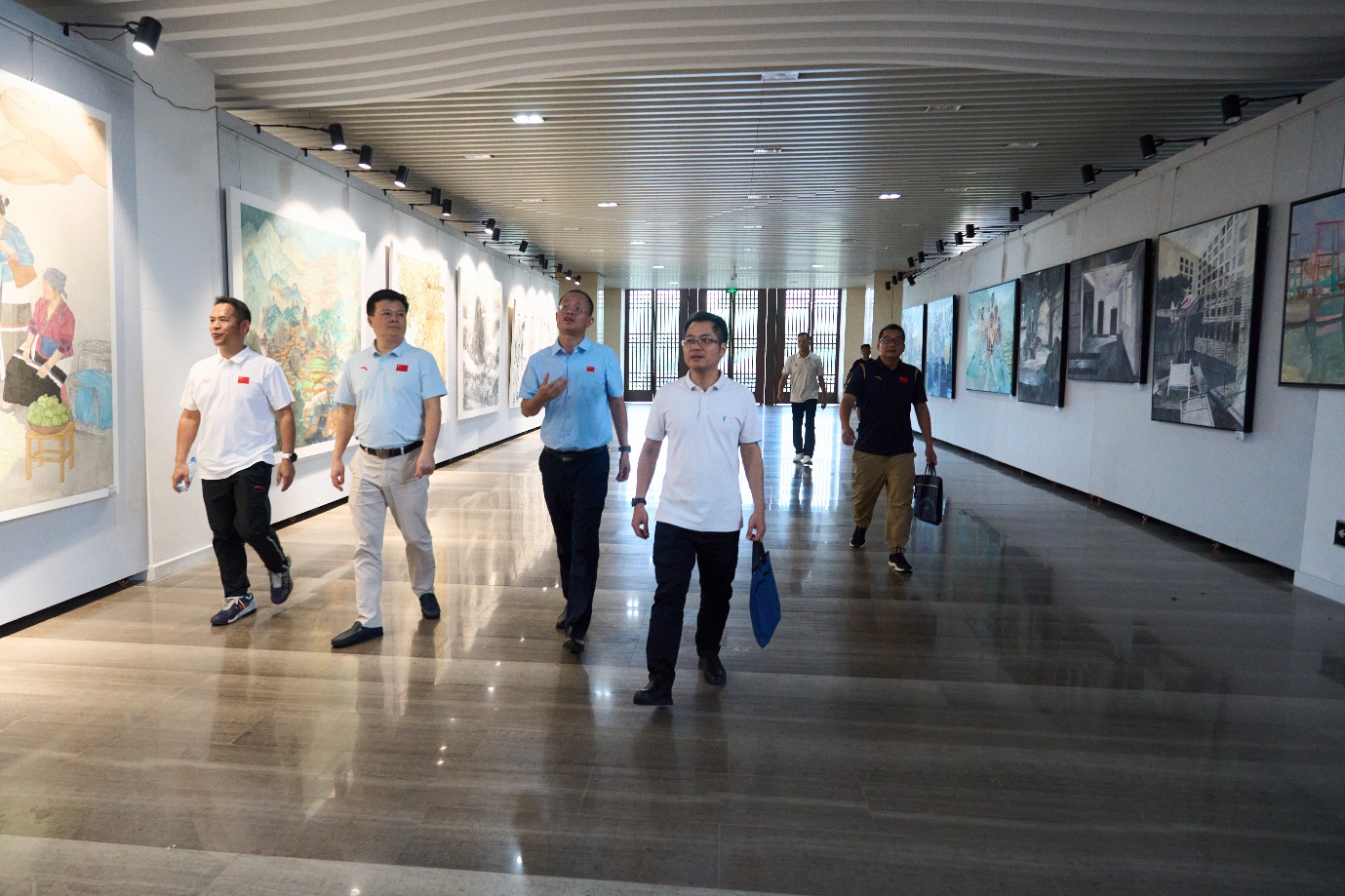 座谈会后,覃安基陪同客人参观了公司的体育场馆,考察了汇学堂、君武馆等会议设施。