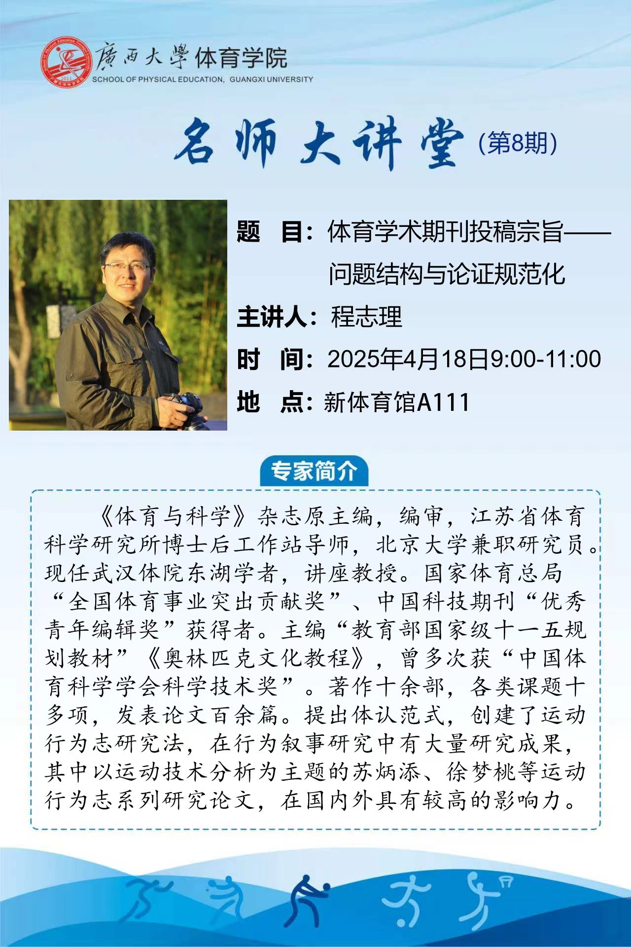 beat365官网登录中文名师大讲堂(第8期):体育学术期刊投稿宗旨——问题结构与论证规范化