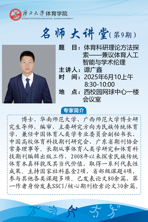 beat365官网登录中文名师大讲堂(第9期):体育科研理论方法探索——兼议体育人工智能与学术伦理