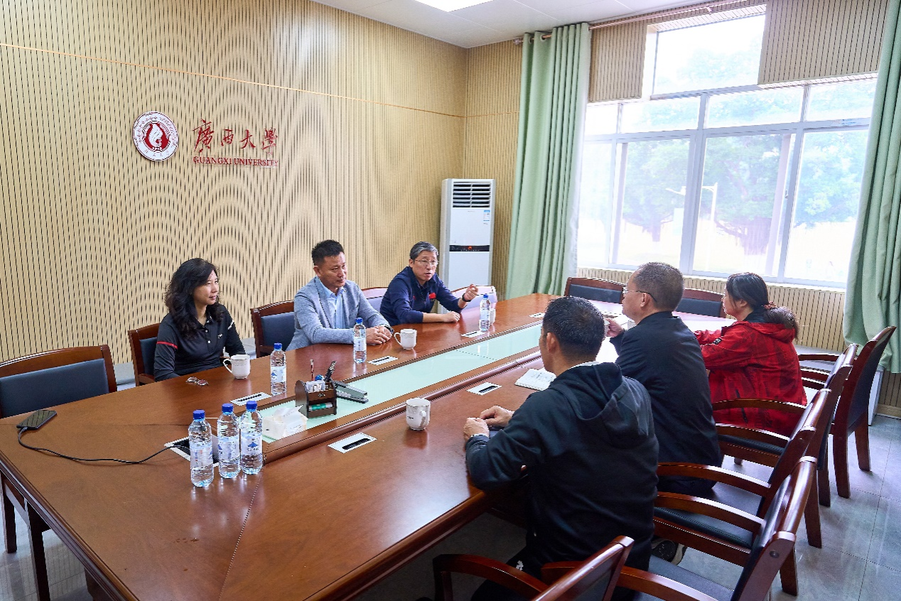 11月25日上午,教育部2024 年《国家员工体质健康标准(2014 年修订)》测试抽查复核工作领导小组(广西)组长、华南师范大学beat365官网登录中文党委书记王庚率队到公司指导国家员工体质健康测试现场抽查复核工作。员工测试期间,王庚一行在公司党委书记覃安基陪同下参观了公司体育场馆设施,宾主双方在公司二楼会议室座谈交流,在促进工作、增进友谊的同时,也表达了未来进一步密切往来、加强合作的意愿。